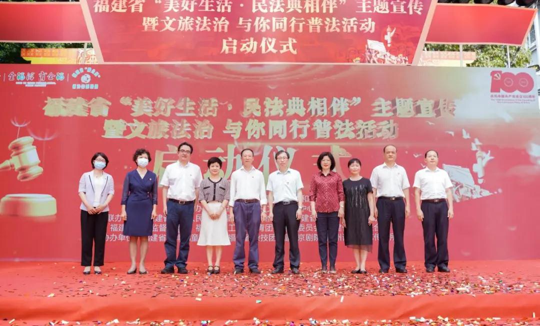 省司法厅党委委员、副厅长、一级巡视员黄岩生,省文化和旅游厅党组成员、副厅长肖长培,省民政厅党组成员、副厅长陈丽华,省总工会党组成员、副主席张彩珍,共青团福建省委副书记杨溢,省妇女联合会党组成员、副主席张莉,省高级人民法院审判委员会专职委员董碧仙,省市场监督管理局二级巡视员黄秀忠,省公安厅二级高级警长林丹晴,省人民检察院第六检察部主任、三级高级检察官曾传红等领导参加活动。