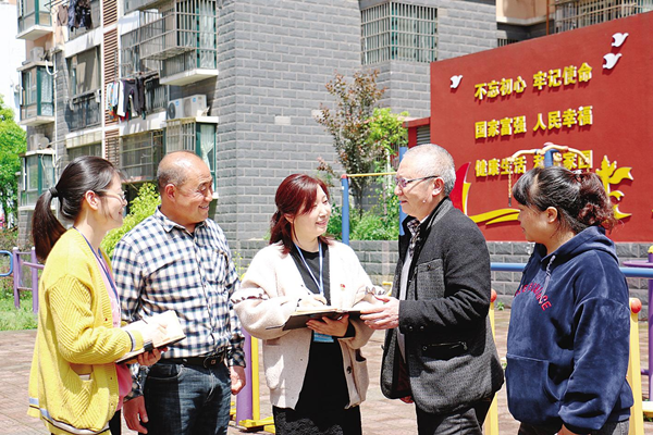 图为宜昌市伍家岗区纪委监委纪检监察干部围绕医疗、教育、养老等民生问题到居民小区开展巡回遍访,听取群众诉求。(通讯员 李程 摄)