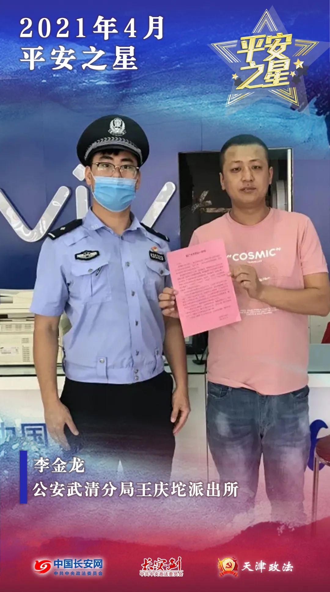 喜报!4月全国“平安之星”公布!天津公安系统2人榜上有名!