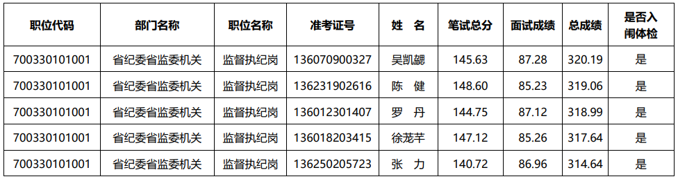 根据《江西省2021年度考试录用公务员公告》,现将省纪委省监委2021年考试录用公务员入闱体检人员名单及成绩予以公布。