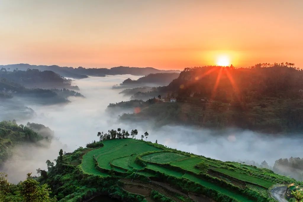 晚霞下的美丽骑龙坳(摄影:余有为)