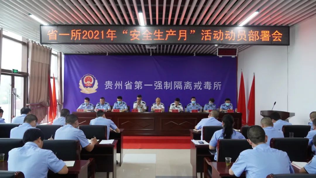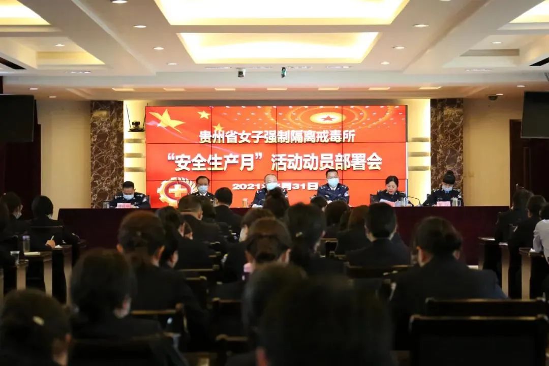 今年6月是全国第20个“安全生产月”,为全面贯彻落实习近平总书记关于安全生产的重要论述,贵州司法行政戒毒系统各单位紧紧围绕“落实安全责任,推动安全发展”的活动主题,分别召开了安全生产月动员部署大会。 贵州省第一强制隔离戒毒所 6月1日,贵州省第一强制隔离戒毒所(以下简称省一所)召开安全生产月动员部署会。 会议要求,要抓牢重点环节,持续开展隐患问题集中整治,深化源头治理、系统治理和综合治理,消除场所安全隐患;持续提升消防安全“四个能力”,要不断创新,转变观念,从应急演练转变为应急演习,真实反映全体人员在紧急情况下的临场反应,检验民警在灾害发生时的应急指挥、组织协调和针对突发事件的处置能力。目前,省一所2021年“安全生产月”活动正式拉开序幕,各项工作按计划推进。 点击阅读原文:【一所动态】坚持不懈抓安全 安全意识入人心 贵州省第二强制隔离戒毒所 6月1日,贵州省第二强制隔离戒毒所(以下简称“省二所”)召开2021年“安全生产月”暨“安全生产贵州行”动员部署会。 会议要求:一是要提高政治站位,全面加强学习,充分认识开展活动的重要性,推动学习习近平总书记关于安全生产重要论述走深走实;二是要加强组织领导,结合安全生产专项整治集中攻坚行动,有序推动活动开展,强化问题隐患的整治;三是创新方式方法,多部门多渠道联动,落实宣传工作,提高全员安全意识。 点击阅读原文:省二所召开“安全生产月”暨“安全生产贵州行” 动员部署会 贵州省女子强制隔离戒毒所 5月31日,贵州省女子强制隔离戒毒所(以下简称“省女所”)组织召开安全生产月动员部署大会。 会议强调:一是突出“落实安全责任,推动安全发展”主题,推动学习习近平总书记关于安全生产重要论述精神走深走实。二是以“安全生产月”活动为契机,抓好“专项整治集中攻坚”。三是突出重点,狠抓落实,认真做好当前和今后的安全生产工作。 点击阅读原文:安全生产月 | 抓落实速部署 掀安全生产月活动热潮 贵州省安顺强制隔离戒毒所 5月28日,贵州省安顺强制隔离戒毒所(以下简称“安顺所”)开展了“安全生产月”活动动员大会。 会议强调:一是深化对“安全生产月”活动主题的认识。二是严格落实各项安全措施和主体责任。三是以安全生产月活动为契机,全面确保场所安全。各级领导、各部门要有清楚的认识,严格落实上级要求,做到活动有方案,过程有检查,结果有效果。开展好隐患排查,加大对自然灾害隐患的排查,加强施工现场的管理。 点击阅读原文:安全生产月活动动员会 贵州省黔东强制隔离戒毒所 6月1日,贵州省黔东强制隔离戒毒所(以下简称“黔东所”)多措并举全面启动“落实安全责任、推动安全发展”为主题的第20个“安全生产月”活动。 会议要求:一是召开“安全生产月”活动启动仪式,安排部署安全生产工作。二是夯实组织保障,加强制度约束。三是强化宣传教育,增强防范意识。四是深入检查、强化整改。 点击阅读原文:【黔东所动态】以月促年 以年促安 都匀强制隔离戒毒所 5月31日,都匀强制隔离戒毒所(以下简称“都匀所”)召开以“落实安全责任,推动安全发展”为主题的“安全生产月”动员部署大会。 会议强调,要围绕“落实安全责任、推动安全发展”这一活动主题,进一步树牢安全发展理念,理清安全管理脉络,压实安全责任,提高安全管理能力;要加大安全宣传教育力度,提高民警职工安全意识,努力营造良好的安全生产氛围;要严格落实安全生产主体责任,全面开展安全生产风险隐患排查,做到不留盲区死角;要扎实开展应急演练,提高突发事件应急处置能力,为安全生产持续稳定向好营造安全、和谐、稳定的环境。 点击阅读原文:都匀强制隔离戒毒所召开“安全生产月” 动员部署会 六盘水强制隔离戒毒所 5月31日,六盘水强制隔离戒毒所(以下简称“六盘水所”)召开“安全生产月”活动部署会议。 会议要求:一是要充分认识开展“安全生产月”活动的重要意义。二是要落实“党政同责,一岗双责,失职追责”工作规定,压紧压实安全生产责任,筑牢全所民警职工安全发展理念,不断提升全所民警、职工、戒毒人员安全生产水平和应急自救能力。三是要坚持以“四到”为抓手,常抓不懈,全力确保场所隐患排查、整治到位。 点击阅读原文:精心组织 周密部署 认真开展第20个“安全生产月”活动