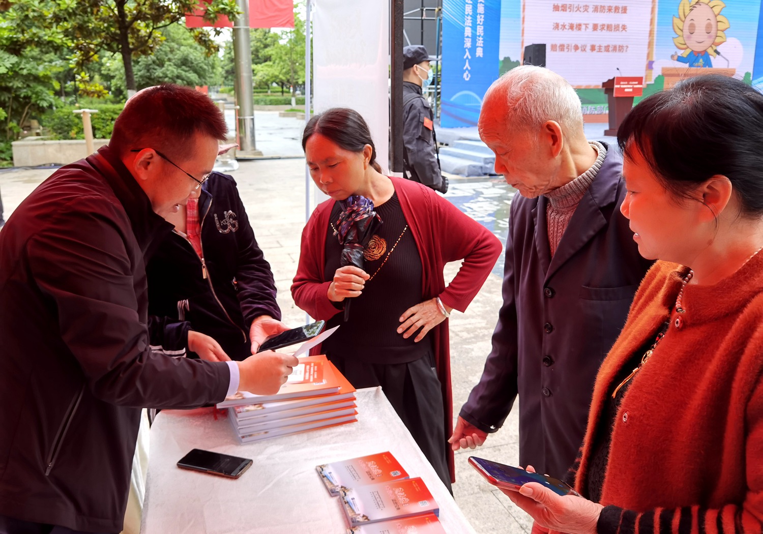 活动中,普法与依法治理处党支部的党员志愿者们在社区法治文化广场边摆摊设点,向社区居民发放《“民法典进万家万企”法治宝典》口袋书,帮助他们安装《法治宝典》配套的手机APP,并提供法律咨询和法律帮助。“这本小书内容通俗易懂、丰富有趣,这个民法通APP也非常实用,打开手机就能学法和寻求法律服务,让学习法律知识和咨询法律问题变得十分便捷,基本满足了我们老百姓在法律方面的需求。”金元社区居民安女士在成功安装手机APP并试用后向党员志愿者表示感谢。