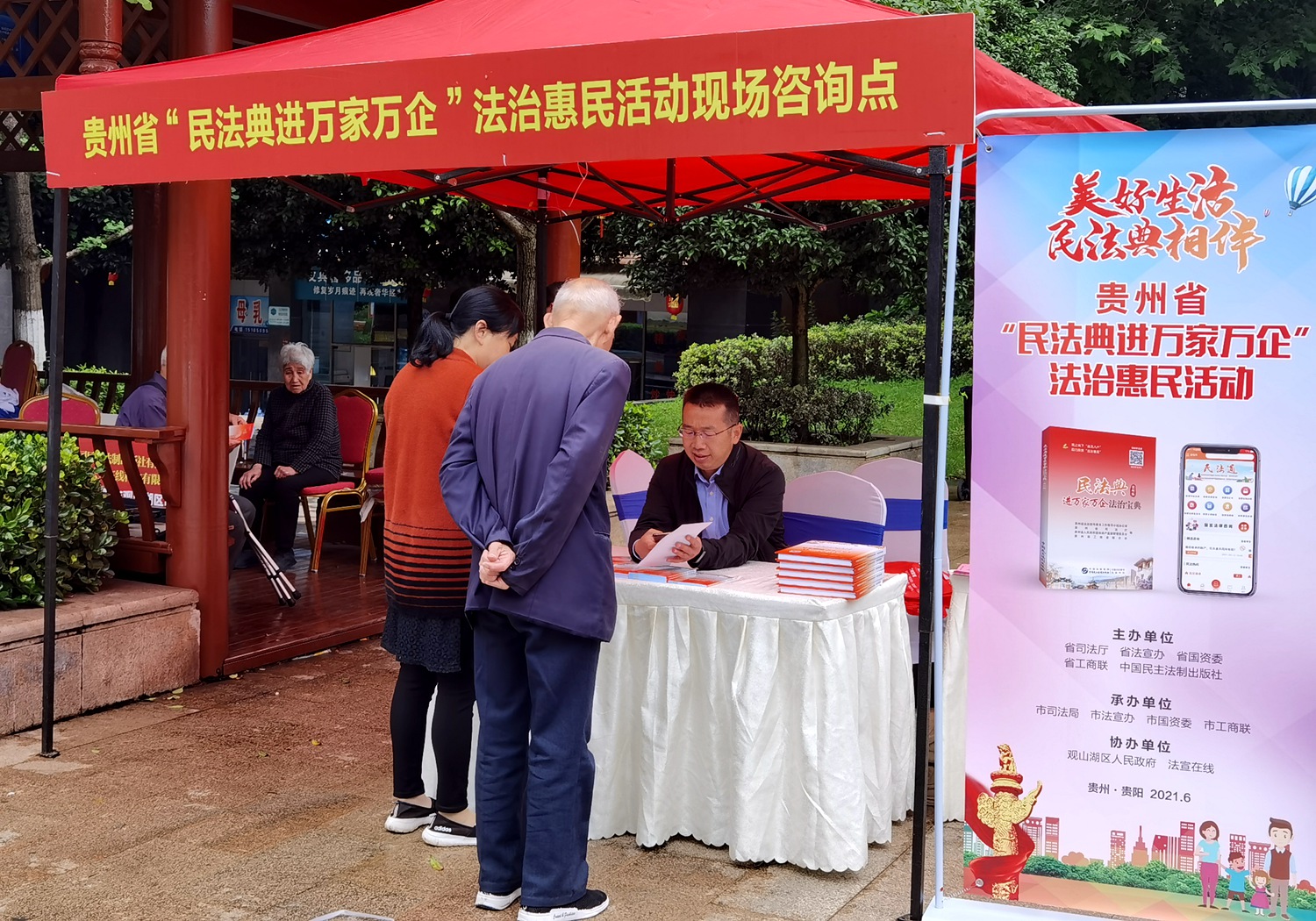 遵循着习近平总书记的重要指示精神,追随着习近平总书记视察贵州的足迹,省司法厅普法与依法治理处党支部全体党员来到金元社区,采取开展法治宣传和提供法律咨询的方式进行志愿服务,为群众送去实实在在的法治实惠。