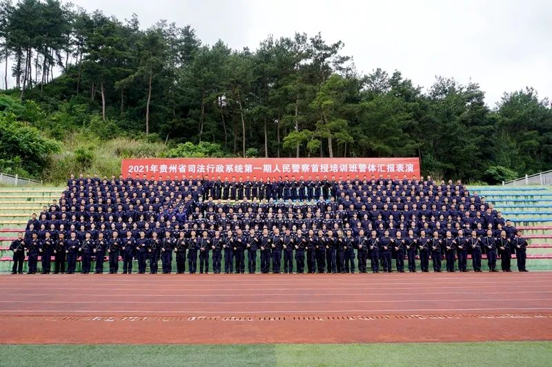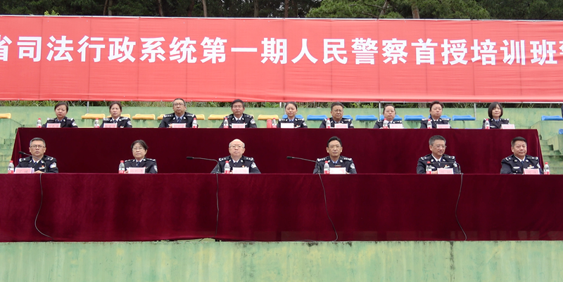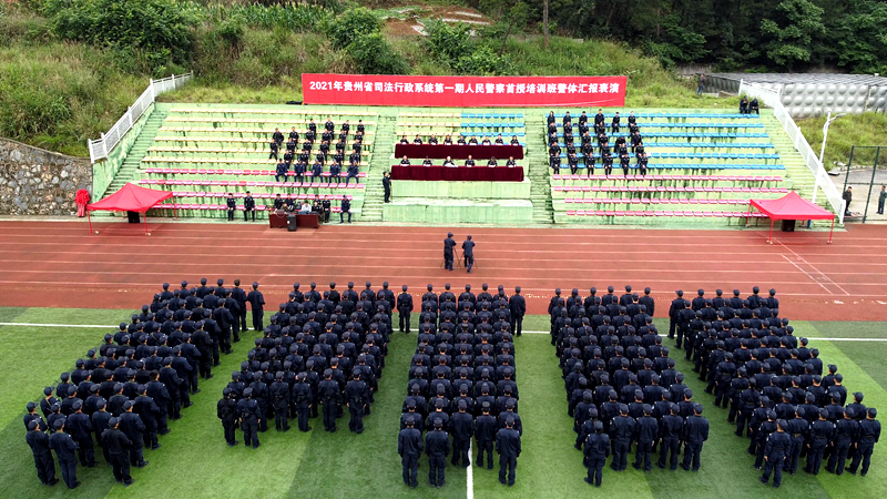 为检验司法行政系统新录用民警初任培训效果,展示新警们朝气蓬勃和激昂向上的精神风貌,进一步筑牢时代警魂,锤炼过硬作风,6月4日上午,贵州省司法警官学校举行了2021年贵州省司法行政系统第一期人民警察警衔首授培训警体汇报演练。省司法厅党委委员、政治部(警务部)主任李玉峰出席汇报演练活动并讲话,省司法厅人事警务培训处处长李宗强,省监狱局党委委员、政治部主任杨黔粤,省戒毒局党委委员、政治部主任陈静及相关负责同志,省司法警官学校班子成员及全体教职工到场观摩,学校党委书记、校长丁健主持演练活动。