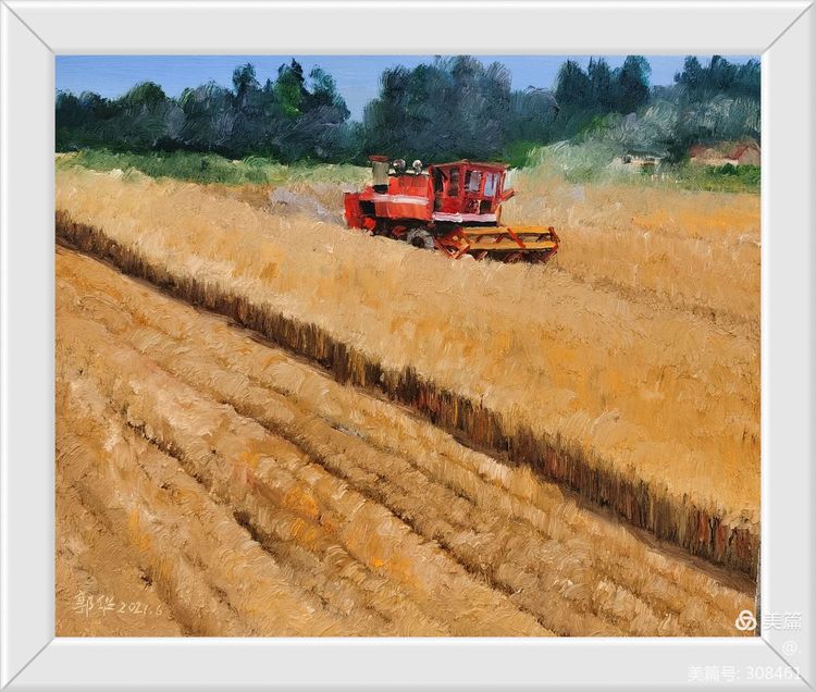 芒种一过,地处中原大地,麦黄季节,天地大美,开始了一年最喜悦也最忙碌的季节。南风不停地吹,一阵干热风过后 ,由南至北,麦子次第成熟。一望无际的麦地,像金色的海洋,迷人的丰收景象,让艺术家们怦然心动。抑制不住激动的心情,拿起笔,支起画架,把心中的喜悦跃然画上。