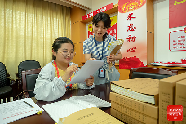 杭州市淳安县纪检监察干部在县市场监督管理局查看会议记录、核查账务账册,对违规发放津补贴、公款吃喝等违反中央八项规定精神问题进行监督检查。(杭州市淳安县纪委监委 毛勇锋 摄)