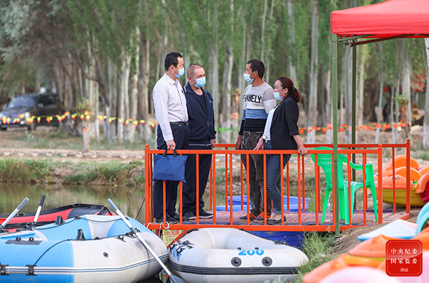 新疆维吾尔自治区库车市各级纪检监察机关在旅游景区、大型超市、农家乐等重点场所,加大对“四风”问题督查力度,收集问题线索。(新疆维吾尔自治区库车市纪委监委 袁欢欢 摄)