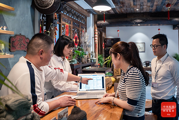 浙江省桐庐县纪委监委开展正风肃纪检查,先后到单位食堂、民宿、农家乐、旅游景点等重点场所开展明察暗访,深挖细查违规吃喝、公款旅游、公车私用等问题线索。图为该县纪检监察干部到农家乐走访,排摸公款吃喝问题。(浙江省杭州市桐庐县纪委监委 俞丰 摄)