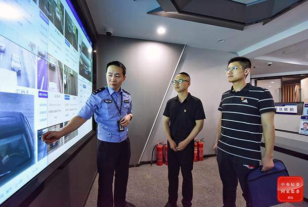 厦门市集美区纪委监委监督检查组依托交警部门智慧平台抽查辖区公车出行情况。(厦门市集美区纪委监委 李松荣 摄)