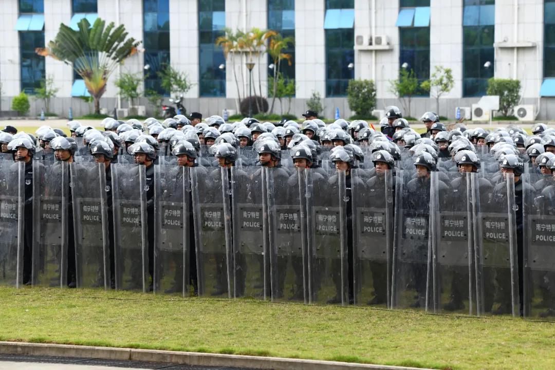 此次“红蓝对抗”演练由3个情景演练视频和1个实时现场直播演练组成,以处置多地点、多样式突发事件为背景,以应急处突实战为主题,通过模拟处置各类突发事件,充分展示公安机关熟练运用指挥调度系统、空中侦查、情报信息系统、公安大数据平台等智能化系统和设备,配合使用警用装甲车、水炮车、无人机等先进装备,应对突发事件的处置战法,有效检验我区公安机关协同处置突发事件的能力水平,全面展现了广西公安机关指挥高效、反应迅速、协同密切、装备精良、技能精湛,敢打必胜的铁军形象。