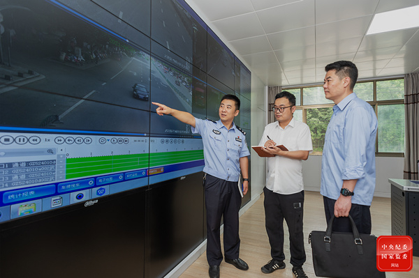 浙江省武义县纪委监委组建正风肃纪专项督查组,借助公务用车数据监管平台对车辆调度情况、公车停放点位及行车轨迹进行随机抽查和现场核查,实现精准监督。图为该县纪检监察干部在数据监管平台前了解情况。(浙江省武义县纪委监委 郑功 摄)
