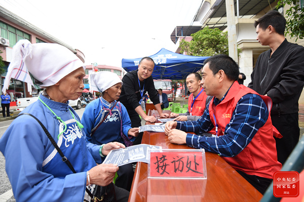 贵州省黔南州龙里县委巡察办联合湾滩河镇纪委在该镇羊场社区设立接访点,通过发放资料、现场询问等方式,严查干部是否存在不担当不作为问题,营造风清气正的良好发展环境。(贵州省黔南州龙里县纪委监委 罗显琴 摄)