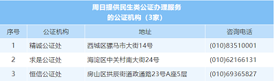 在周六为群众提供民生类公证服务,3家公证机构在周日为群众提供民生类公证服务。