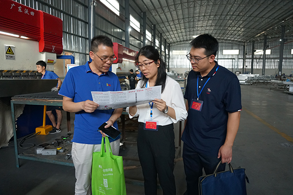 “这份信访举报指南里面列有举报方式、举报受理与不予受理范围等信息,您如果发现职能部门及干部在涉企服务中有违纪违法的行为,可以向我们举报。”近日,肇庆四会市纪委监委以“我为群众办实事”实践活动为抓手,聚焦营商环境“痛点”“难点”“堵点”问题,组织纪检监察干部深入各工业园区、企业车间,通过访谈交流、政策讲解、现场接访等方式,了解企业运营情况,摸排职能部门及干部在服务企业过程中可能存在的违纪违法问题线索,督促职能部门靠前服务,为企业发展纾困解难。图为四会市纪检监察干部在南江工业园区向企业员工讲解纪检监察信访举报相关知识。