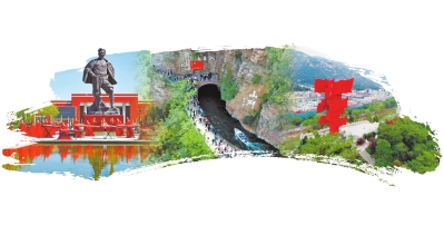 图①兰考焦裕记念园 图②红旗渠风景区 图③新县“八面红旗”雕塑 记者 王铮 摄