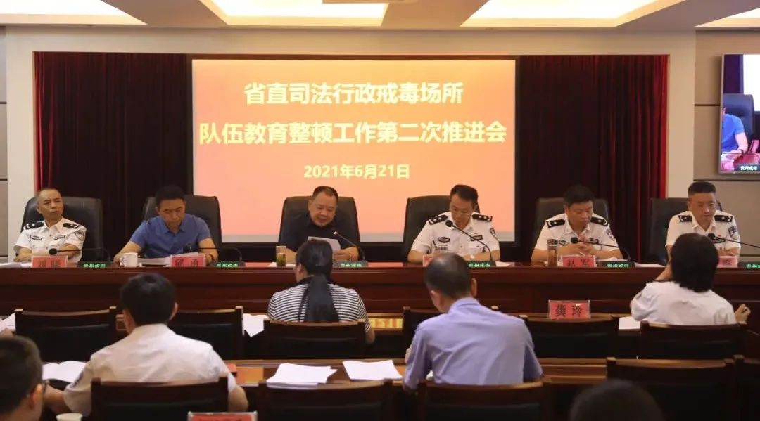 6月21日,省直司法行政戒毒场所队伍教育整顿工作第二次推进会召开,会议深入学习贯彻习近平总书记关于政法队伍教育整顿重要指示精神和党中央决策部署,深入贯彻落实全省政法队伍教育整顿领导小组会议暨政法队伍教育整顿工作推进会和全省司法行政系统队伍教育整顿第二次推进会议精神,总结省直司法行政戒毒场所队伍教育整顿查纠整改环节工作完成情况,安排部署总结提升环节工作任务,全面推动队伍教育整顿工作走深走实。