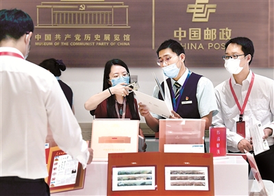 设在展览馆三层的中国共产党历史展览馆主题邮局也于当日正式揭牌。活动现场,最引人关注的当属“100100”的专属邮编。主题邮局相关负责人姬长江介绍,专属邮编“100100”正式启用,不仅记录着党史展览馆落成于建党100周年之际,也寓意着中国共产党向着“两个一百年”奋斗目标勇往直前。