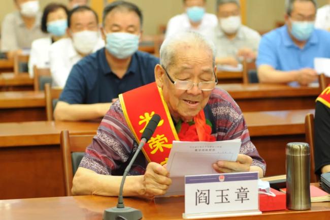 庄严的音乐响起,贾文雅走向老党员,依次为厅机关党龄达到50年的22位优秀党员代表颁发“光荣在党50年”纪念章。首次颁发“光荣在党50年”纪念章,是中国共产党成立100周年庆祝活动的重要组成部分。这样的光荣时刻,让每位参会人员都倍感振奋,现场响起了热烈的掌声。省司法厅机关共有39位优秀老党员荣获纪念章。在随后召开的座谈会上,老党员代表阎玉章、崔志华、李文泉分别发言,追忆青春岁月,不忘入党初心。