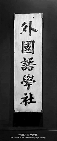外国语学社牌。外国语学社是上海的早期共产党组织创办的一所培养干部的学校。刘少奇、任弼时、萧劲光、罗亦农都曾在这里学习。易舜 摄