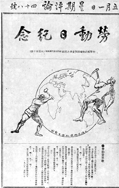 上海的《星期评论》是五四时期一家积极提倡新文化、传播新思想的报刊,这是1920年5月1日《星期评论》推出的“劳动日纪念”专号。(资料图片)