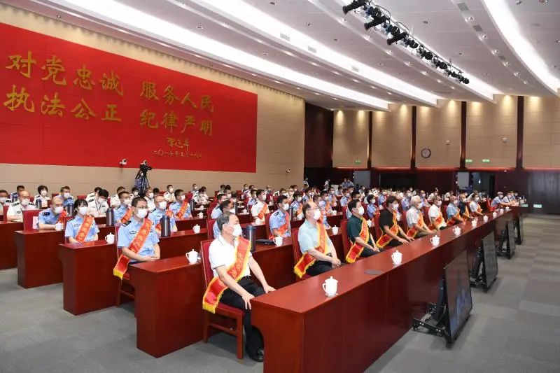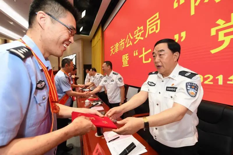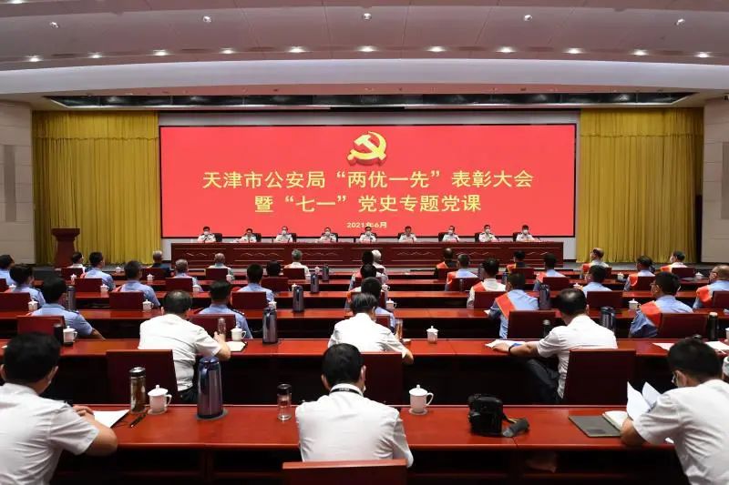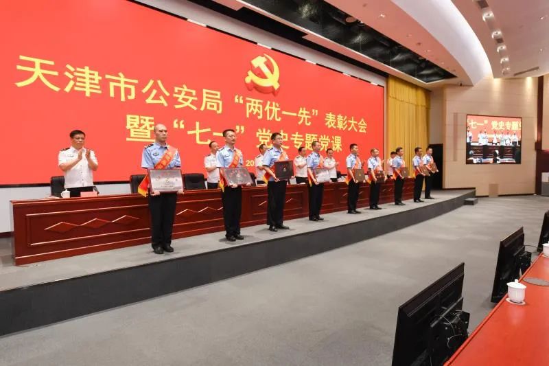 6月25日,天津市公安局召开“两优一先”表彰大会,举办“七一”党史专题党课,向老党员代表颁发“光荣在党50年”纪念章,通报表彰“两优一先”、扫黑除恶专项斗争先进集体和个人。副市长、市公安局党委书记、局长董家禄为全体民警、辅警讲专题党课,市委党史学习教育第十三巡回指导组负责同志出席。