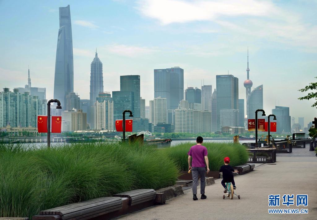 5月15日,市民在上海杨浦滨江公共空间休闲漫步。新华社记者 刘颖 摄