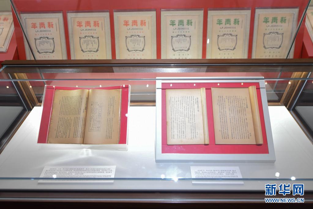 这是6月26日在北大红楼拍摄的刊登李大钊《布尔什维主义的胜利》《我的马克思主义观》的《新青年》5卷5号(右)、6卷5号(左)原件。新华社记者 谢晗 摄