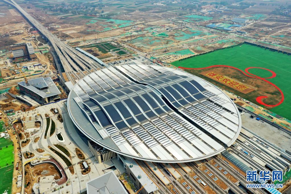 这是4月9日拍摄的京雄城际铁路雄安站(无人机照片)。新华社记者 牟宇 摄