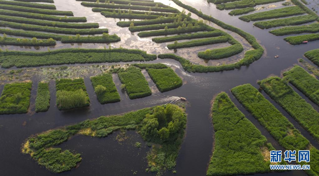 这是5月25日在雄安新区拍摄的白洋淀美景(无人机照片)。新华社记者 才扬 摄