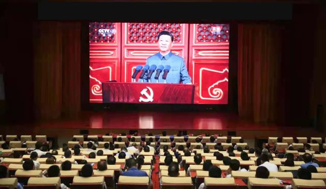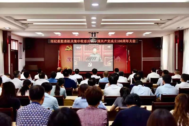 ▲濮阳市纪委监委机关干部集中收听收看庆祝大会直播