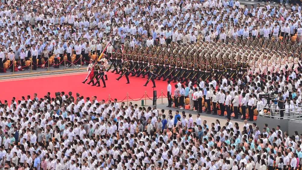 7月1日,7万余人以盛大仪式在北京天安门广场欢庆中国共产党百年华诞,习近平总书记在天安门城楼发表重要讲话。