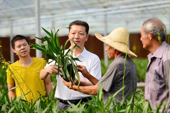2015年6月27日,廖俊波(左二)在政和县铁山镇东涧花卉基地了解情况。(魏培全 摄)