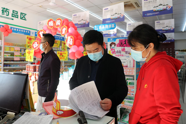 京山市纪检监察干部在药店检查是否存在销售违规药品(摄影/黄小明)