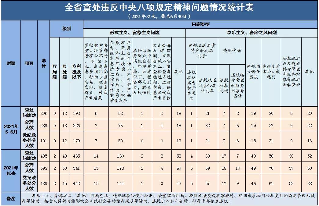 为进一步加大通报曝光力度,持续传导压力、释放越往后执纪越严的信号,省纪委监委建立了全省查处违反中央八项规定精神问题情况定期通报制度。2021年以来,全省查处违反中央八项规定精神问题情况如下。