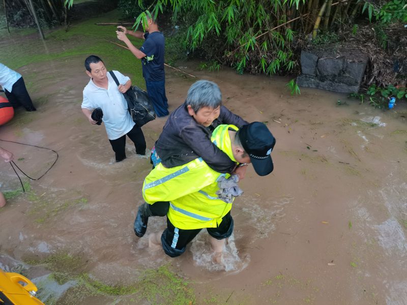 11日,渠县连降大雨,洪水猛涨,将报恩乡清河社区、沙湾村围成孤岛,数百名群众生命财产受到威胁,渠县公安局民警迅速投入抢险救援。洪水漫过了民警辅警的腰部,但他们仍然坚持挨家挨户转移群众和物资。经过一个多小时的奋战,民警救出被困群众40余名、转移群众2000余名。