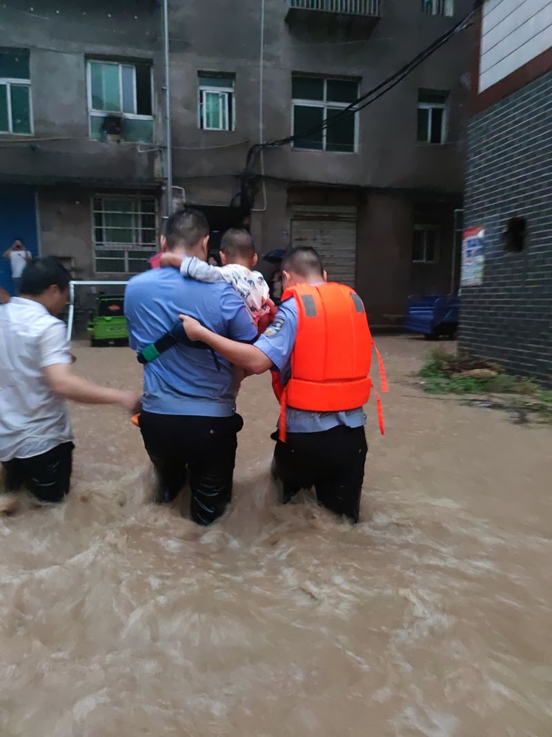 11日凌晨5时许,通川区复兴镇九龙社区周边水位猛涨,通川分局复兴派出所民警火速赶到现场,挨家挨户劝导群众转移。民警在巡查过程中发现一名小女孩独自在家,立即将其抱起,转移到安全地带。数小时的强降雨导致通川区江陵镇多地严重内涝,通川分局组织民警帮助商家紧急转移店铺内的物资,全力减少群众财产损失;针对有的路段被冲毁、塌陷等情况,民警及时设立警示标志;对于洪水进入到居民院落的,民警及时清理疏通出水口。