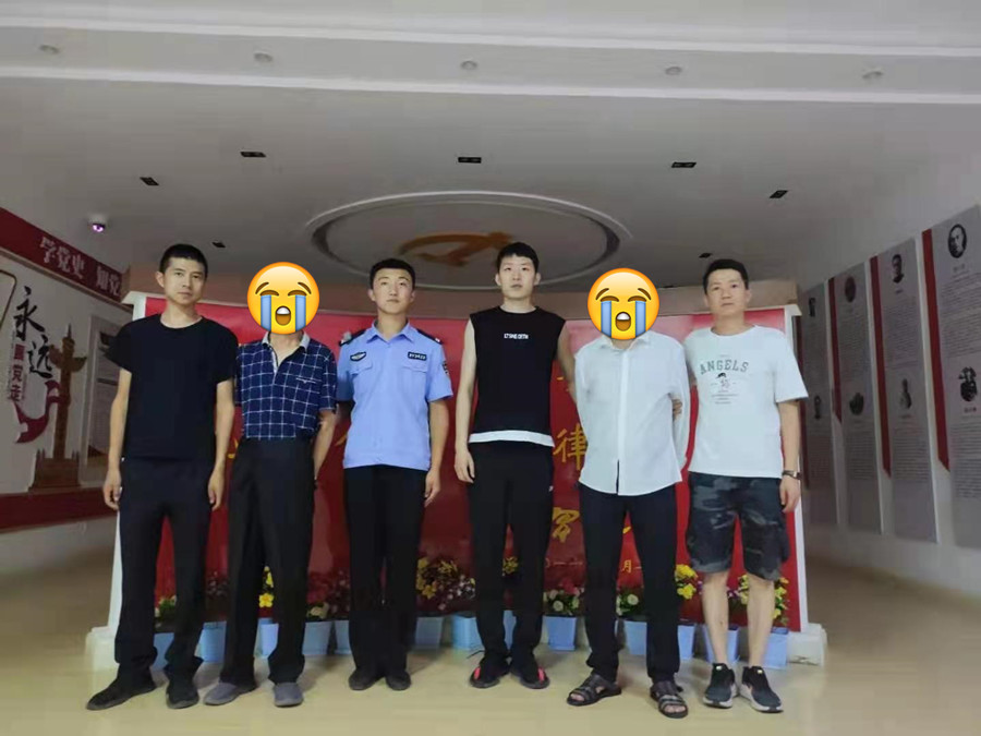 (图左二为故意伤害案犯罪嫌疑人,右二为涉嫌放火案犯罪嫌疑人)