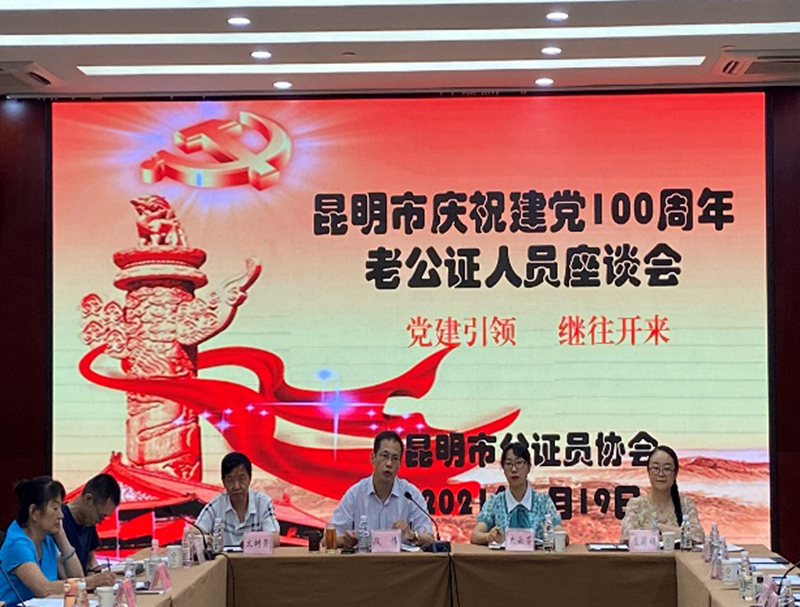 为庆祝中国共产党成立100周年,继承发扬党的优良传统,关心关爱离退休公证人员、公证管理人员的晚年生活,全面回顾和展示公证改革发展历史和现状,为公证事业发展建言献策,根据《云南省司法厅关于印发法律服务行业庆祝建党100周年“七个一”活动工作方案的通知》(云司函〔2021〕12号)要求,2021年6月,全省公证行业积极组织召开以“党建引领、继往开来”为主题的老公证人员座谈会,邀请离退休老公证人员、公证管理人员欢聚一堂,抚今追昔,畅谈云南公证事业的光荣历史和美好明天。