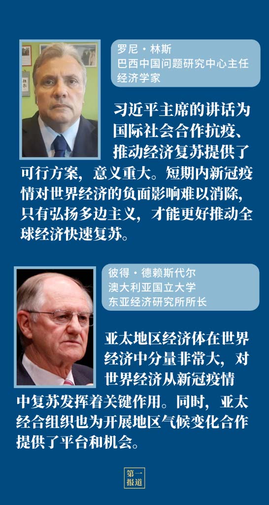 国家主席习近平16日晚应邀在北京以视频方式出席亚太经合组织领导人非正式会议并发表讲话。多国人士认为,在疫情防控形势严峻、世界经济脆弱复苏的当下,习近平主席的讲话为推动地区和全球团结抗疫,以及世界经济复苏注入强大信心和动力。