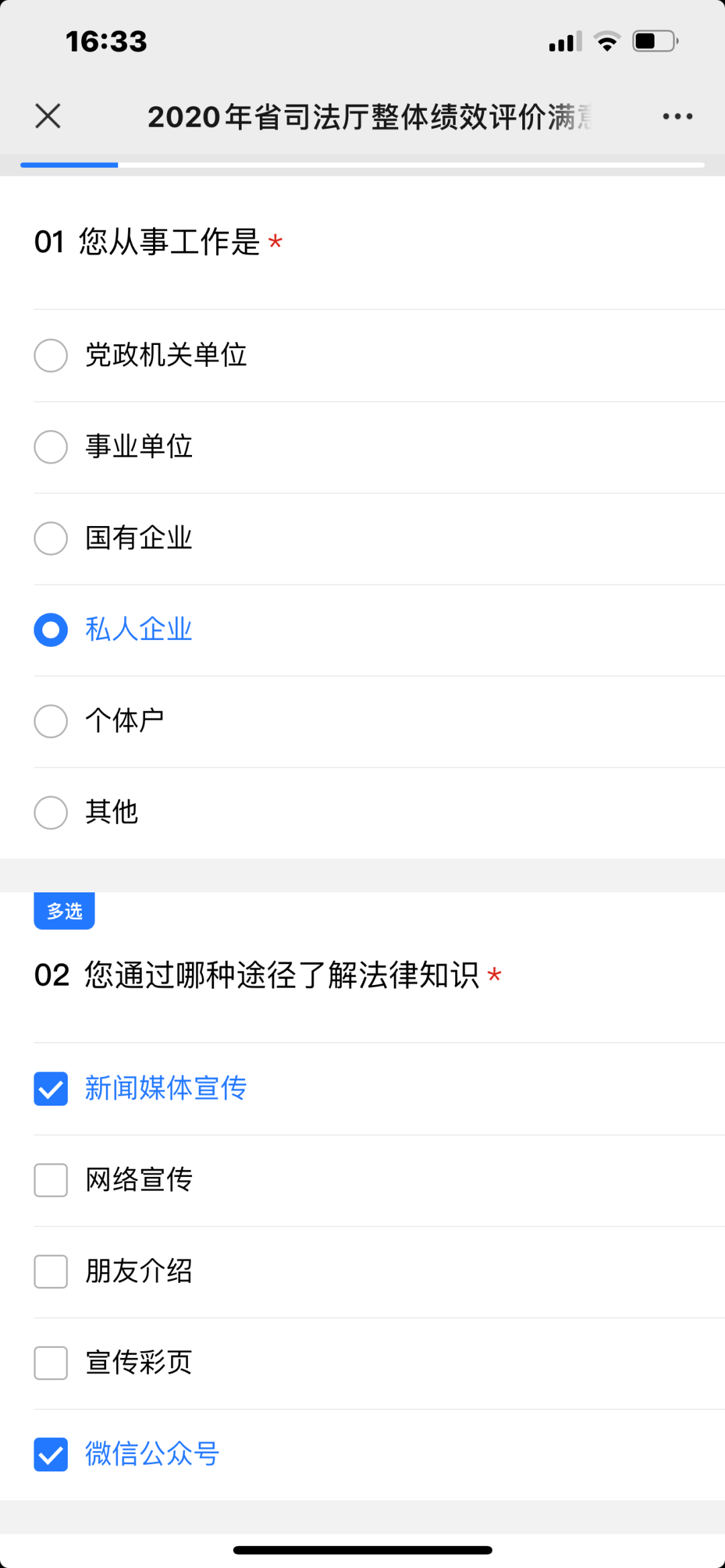 2.根据实际情况勾选答案。