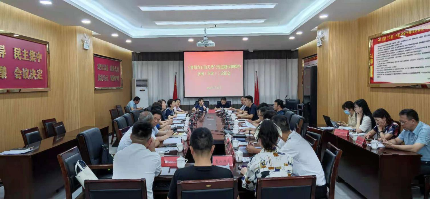 根据省人大常委会、省人民政府2021年立法工作计划,为加快推进《贵州省石油天然气管道建设和保护条例(草案)》立法进程,2021年7月22日,省司法厅组织召开论证会,邀请省人大常委会法工委、省委编办、省公安厅、省国安厅、省市场监管局、贵州省石油天然气学会、国家管网华南分公司贵阳输油部、贵州昆仑天然气有限公司、贵州燃气集团等十五家单位有关负责同志参会,省司法厅党委委员、副厅长胡勇参加会议。