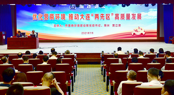 7月16日,大连市纪委监委机关举办2021年第三期“清‘连’讲坛”,邀请市营商环境建设局党组书记、局长贾立庚同志以《优化营商环境推动大连“两先区”高质量发展》为主题进行专题讲座。市纪委监委领导班子成员,各部门、各派驻机构、市委巡察机构、综合保障中心全体党员干部200余人参加活动。