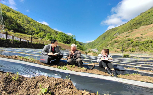 图为该县巡察办干部在桃源乡了解惠农政策落实情况