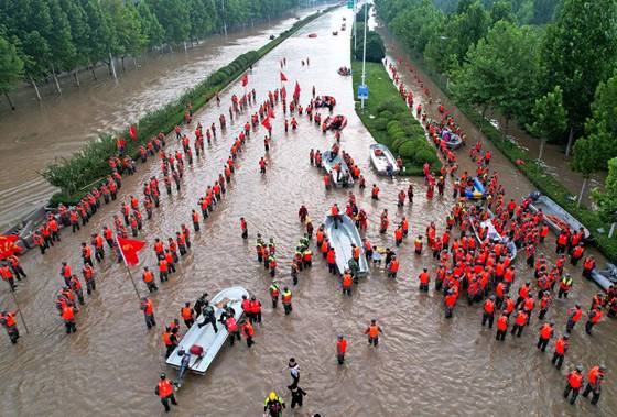 7月20日16至17时,郑州一小时降雨量达到201.9毫米,市内交通中断,地铁发生严重积水,铁路、公路及民航交通大面积中断,常庄水库、郭家咀水库及贾鲁河等多处工程出现险情,防汛应急响应提升至I级。当晚,郑州市纪委监委紧急组建3个领导挂帅的“突击组”,迅速赶往救灾形势最严峻的中牟县贾鲁河段抗洪一线区域内的大王庄、瓦灰郭村、胡辛庄大堤决口参加抢修,协调调度抢险物资,组织群众有序疏散。郑州市郑东新区纪检监察工委组织全体人员进入战备状态,采取“两班倒”模式,深入一线开展监督并帮助群众进行抢险救灾工作。