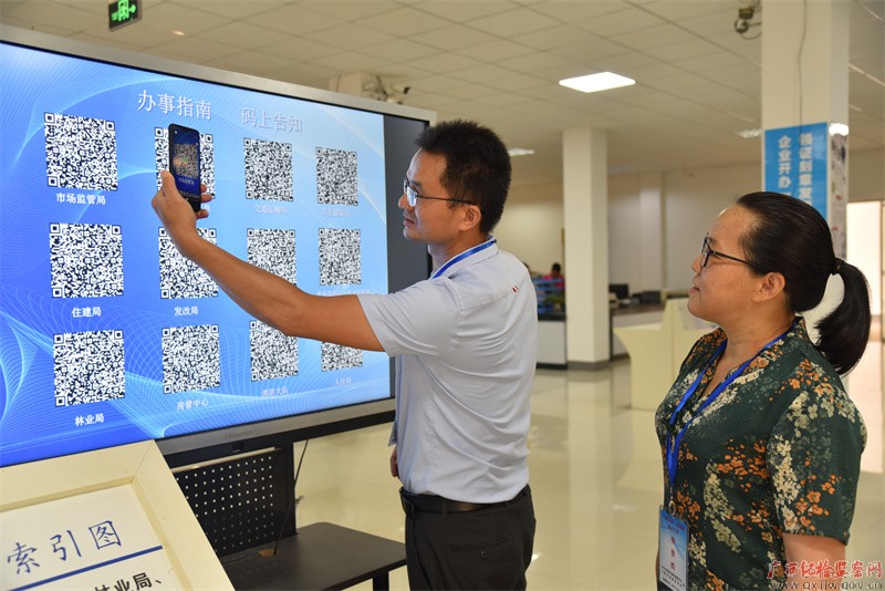 以前办理企业开户,需要到三个窗口分别办理登记、刻章、领票,现在一个窗口就能办理。办业务之前手机扫一扫,自己备齐材料,省去各种咨询环节,节省了很多时间。”在大新县政务服务中心,前来办理业务的李女士表示。