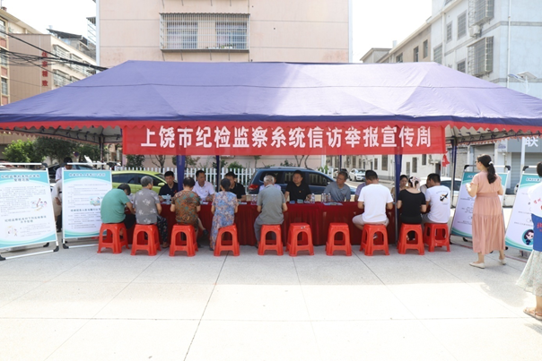 上饶市纪检监察系统积极组织开展信访举报宣传活动。全市纪检监察系统除制作宣传栏、摆摊设点等线下现场宣传外,更注重以视频、微信等线上方式开展宣传。同时,组织纪检监察干部开展“七进”宣传活动,深入田间地头、公园小区、车间农户,向社会广泛宣传信访举报相关法规制度,并现场收集意见建议,推动解决群众“急难愁盼”问题。
