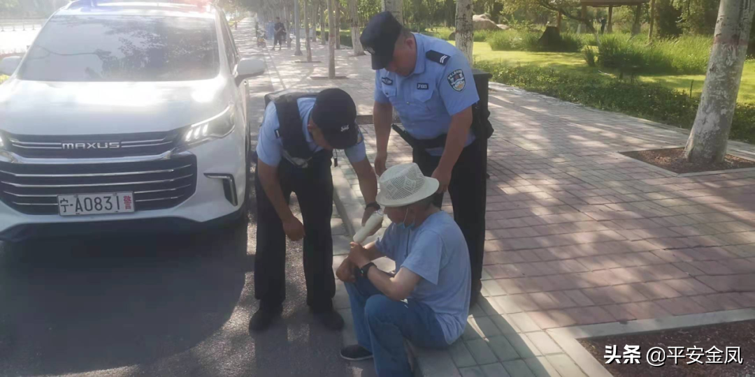 2021年7月14日14时许,报警人称一老人在十字路口晕倒,民警迅速前往现场,通过检视老人状态,发现老人躺在路边十分虚弱,神情恍惚,几近昏迷,疑似中暑,民警见状立即联系120到场进行急救。在120未到达现场期间,民警为缓解老人的中暑症状,一边替老人遮挡阳光,一边向附近店主借了凉毛巾帮老人降温。并解开老人衣领口让其透气,同时放低其头部,让老人保持呼吸顺畅。看着老人一点点好转,民警赶紧询问老人的基本信息,不一会老人的家属赶到现场,激动的握住民警的手表示感谢,“多亏了你们啊,警察同志,不然这么高的温度,真的不知道会发生怎样的危险”。
