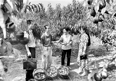 宝鸡市渭滨区纪委监委聚焦群众生活中“痛点”、“赌点”和“难点”问题,及时解决群众“急难愁盼”难题。图为纪检监察干部在高家镇千亩油桃示范基地走访桃农,了解政策落实情况及问题线索。李非 摄