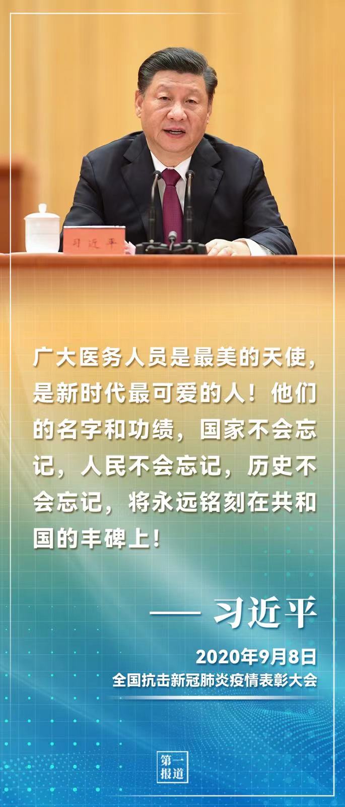 新冠疫情期间,中国广大医务工作者义无反顾冲上防控一线,同时间赛跑,与病魔较量,顽强拼搏、日夜奋战,彰显敬佑生命、救死扶伤、甘于奉献、大爱无疆的精神。习近平总书记称赞他们是“新时代最可爱的人”。